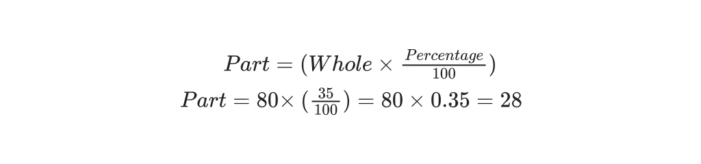 Problem: What is 35% of 80?Answer: 28Solution: