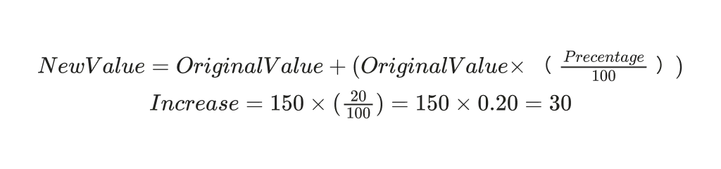 Problem: Increase 150 by 20%Answer: 180Solution: