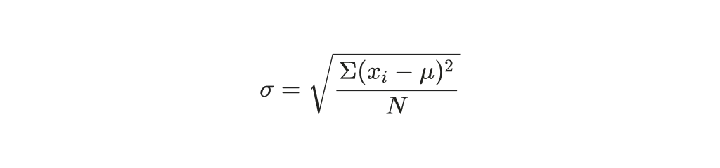 The population standard deviation is the experimental standard deviation under infinitely many measurements, also known as the theoretical standard deviation. A small overall standard deviation “σ” value indicates that the measured values are relatively concentrated, and a large “σ” value indicates that the measured values are relatively scattered. Below is the population standard deviation formula: