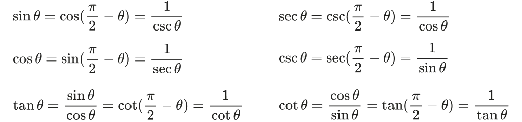Secant (sec), cosecant (csc) and cotangent (cot) are three additional functions derived from the principal functions of sine, cosecant and tangent. The reciprocal of sine, cosine, and tangent are respectively cosecant (csc), secant (sec), and cotangent (cot). The formulas for these functions are as follows: